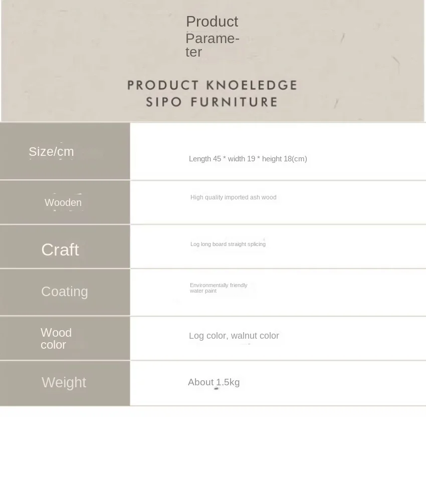 Color classification: Log without paint, log with varnish, light walnut color.