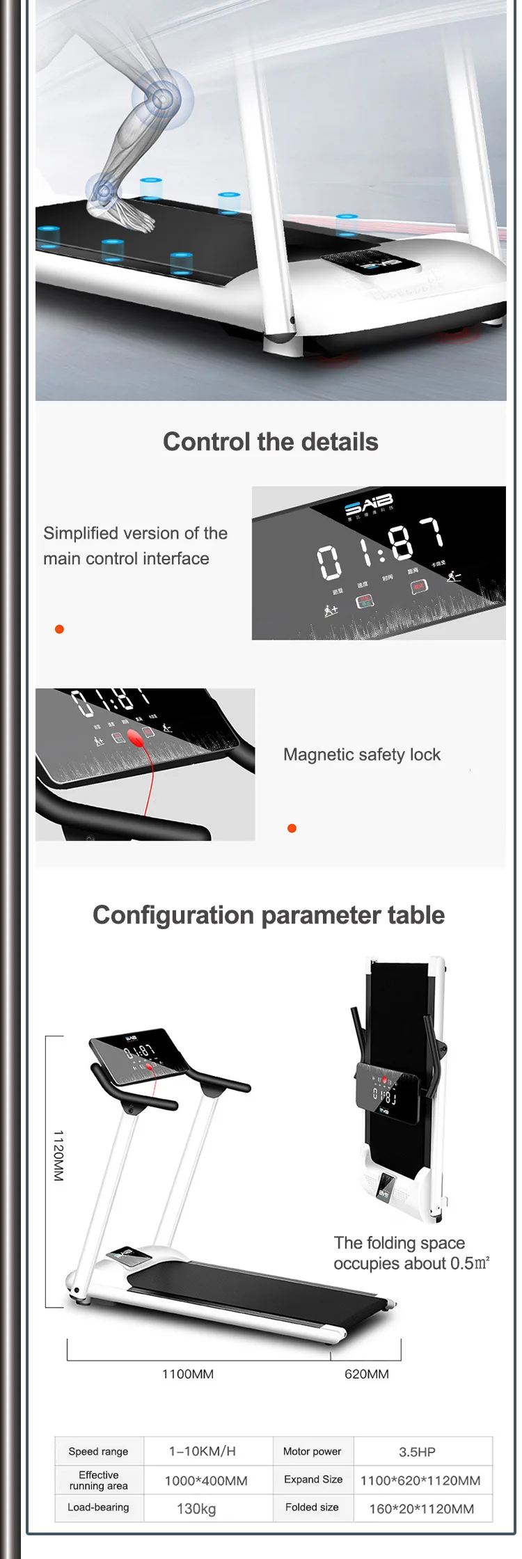 Running belt width: 50-80cm