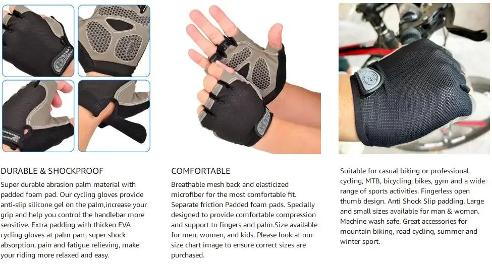 2.ALL-PURPOSE GLOVES: Our gloves are perfect for Biking/Bike/Cycling, Track Cycling, Road Cycling, Mountain Bike, Motorcycle, Driving, Jogging, Running, Climbing, Fishing, Working, Workout, Hiking, Bodybuilding, Exercise, Fitness, Sports etc.