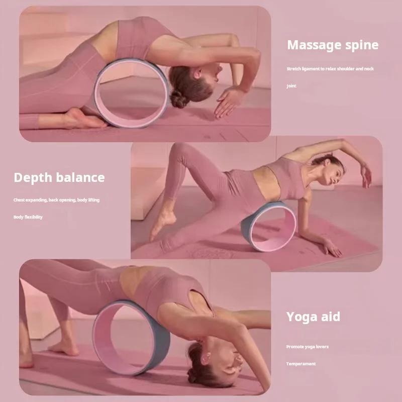 Yoga Wheel, suitable for those with long-term hunched backs and poor posture from prolonged sitting. It serves as a beginner's yoga aid. Made from thick, durable, and high-quality eco-friendly materials. It features 3D anti-slip patterns.